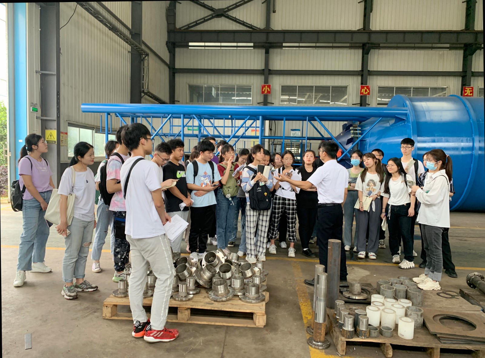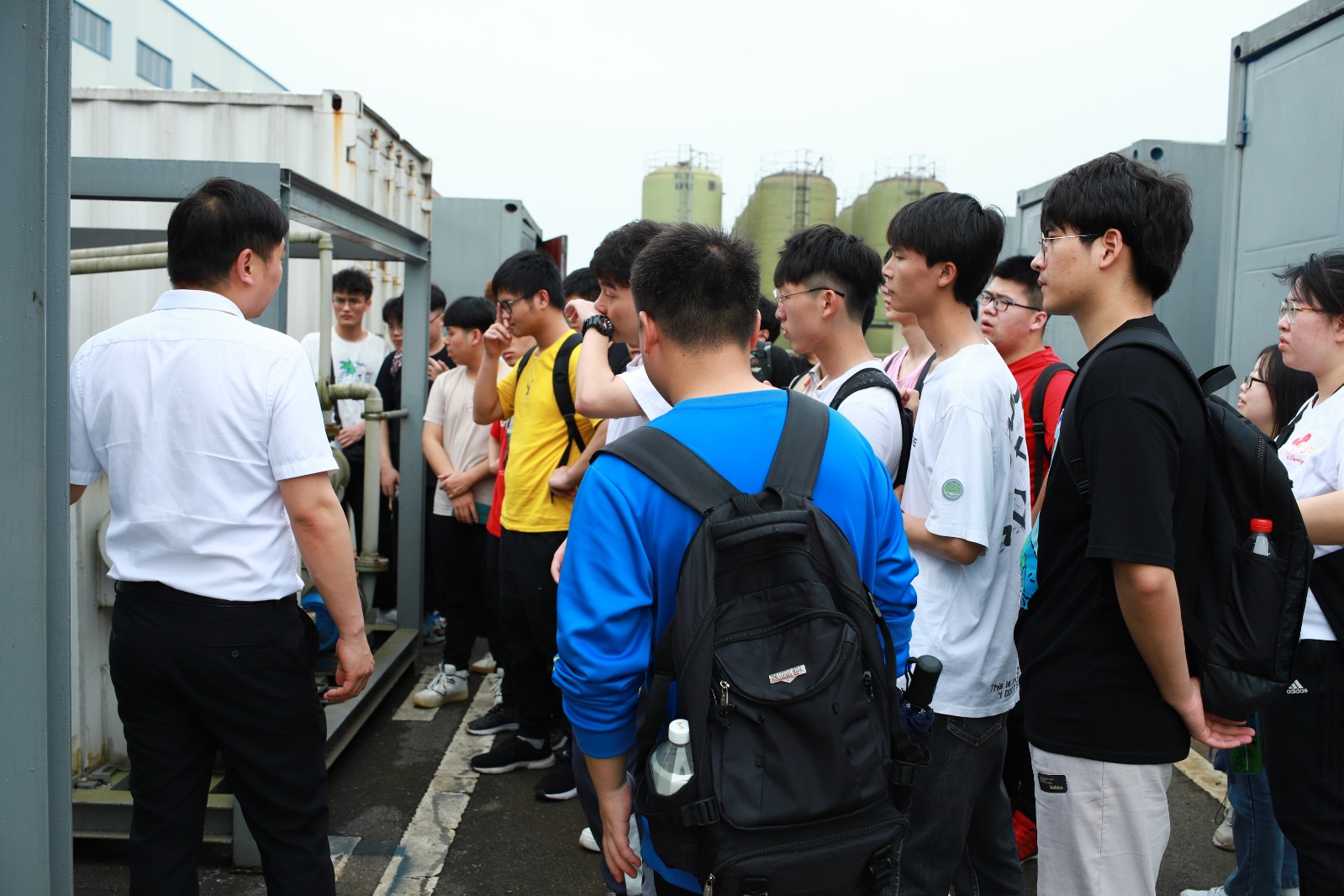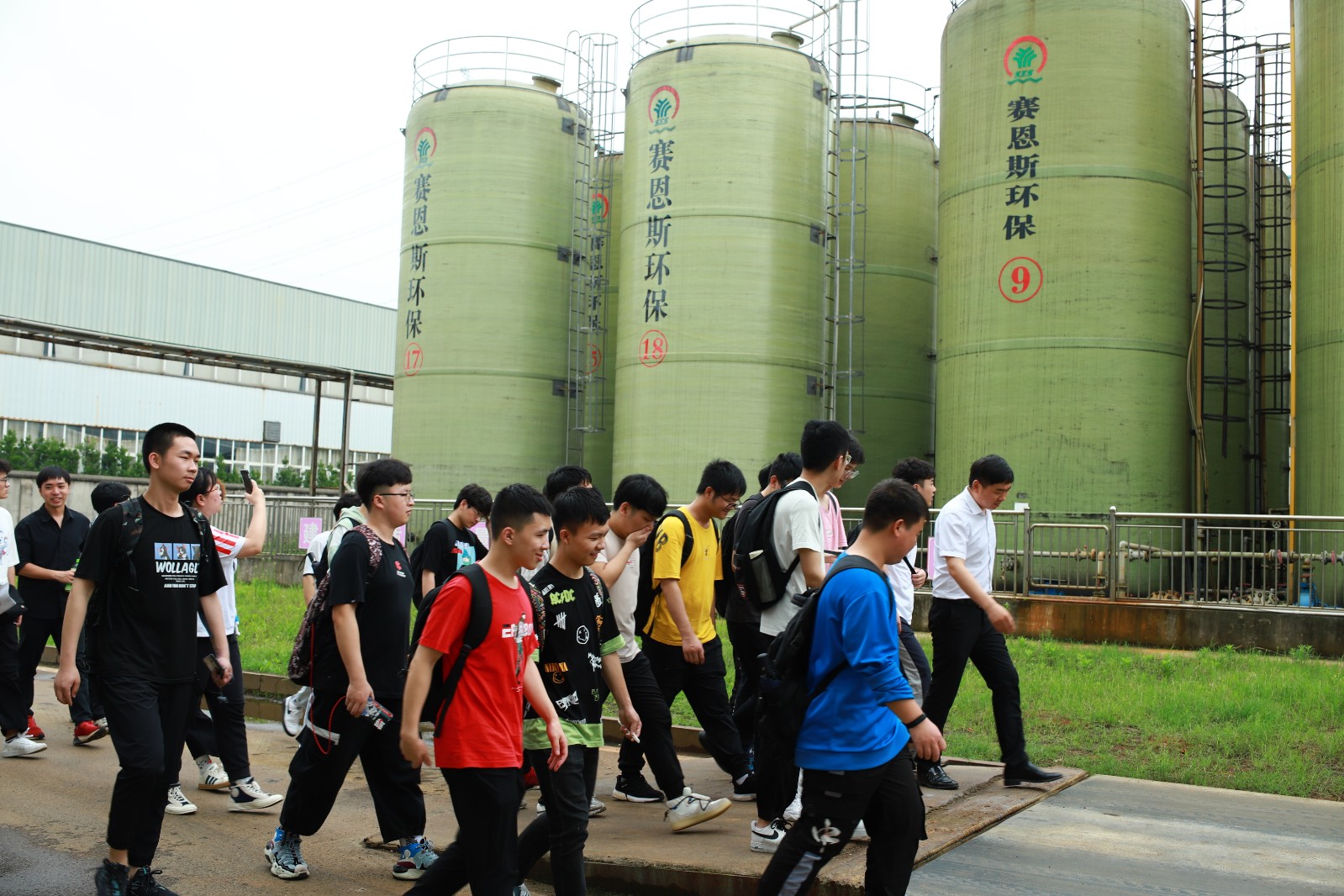 下午兩點(diǎn),全體師生在生產(chǎn)基地辦公樓前坪集合,分為兩組在講解員的帶領(lǐng)下,有序的參觀了賽恩斯科技館、環(huán)保藥劑生產(chǎn)車間、生態(tài)修復(fù)植物培育基地、環(huán)保藥劑儲(chǔ)罐、礦化劑生產(chǎn)線、成套設(shè)備生產(chǎn)車間、中試設(shè)備等,讓同學(xué)們全流程了解環(huán)保藥劑及設(shè)備生產(chǎn)工藝。