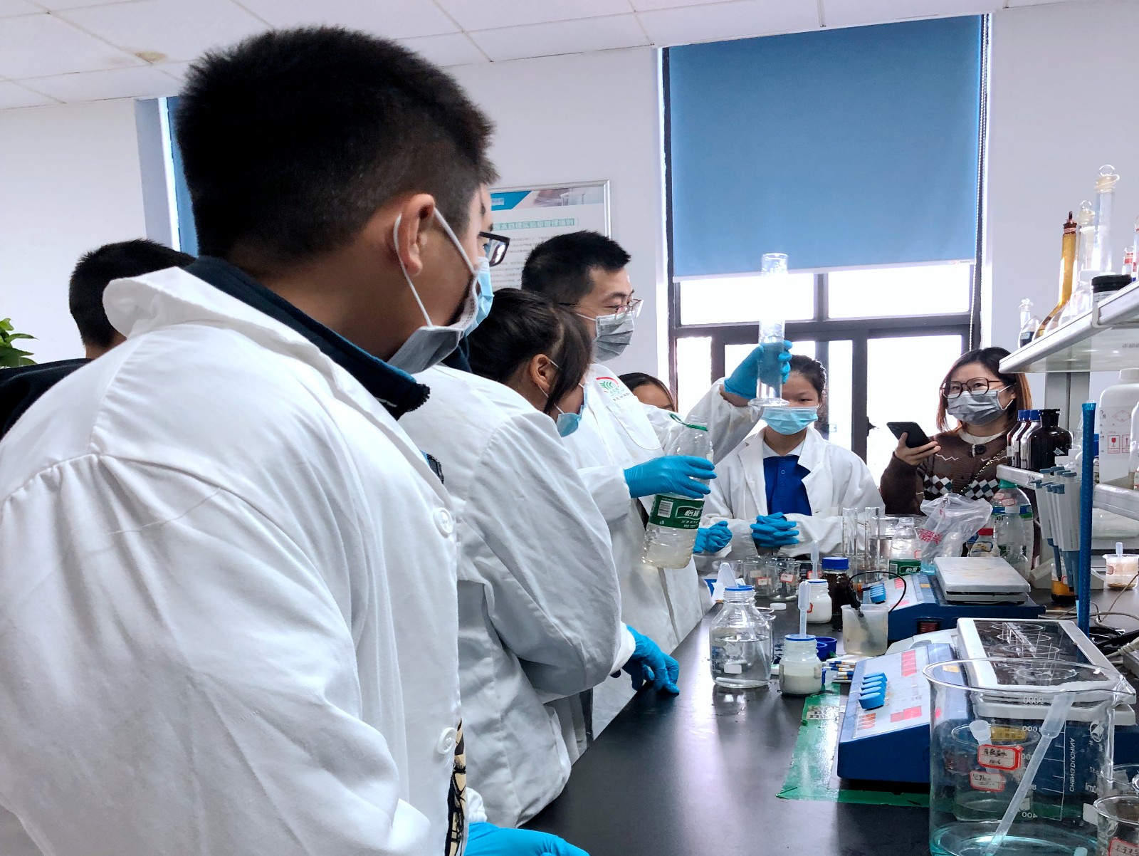實踐出真知。在技術人員的指導和帶領下進行分組廢水處理試驗,同學們拿起燒杯等實驗工具和材料,通過滴一滴、攪一攪、濾一濾見證污水由渾濁變清澈的全過程。
